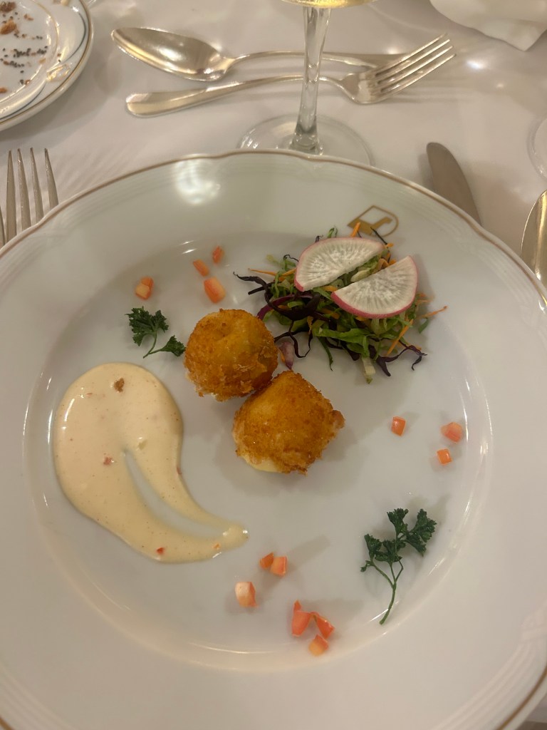 You can also sign up for a “fancy dinner,” which is a six-course meal for $35. It’s really fun to dress up with all your friends and get waited on. Plus, you get a glass of wine, and alcohol is a valuable commodity on the ship.