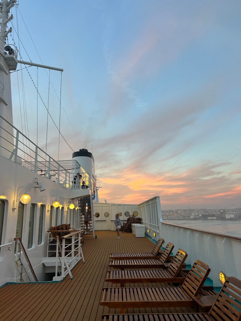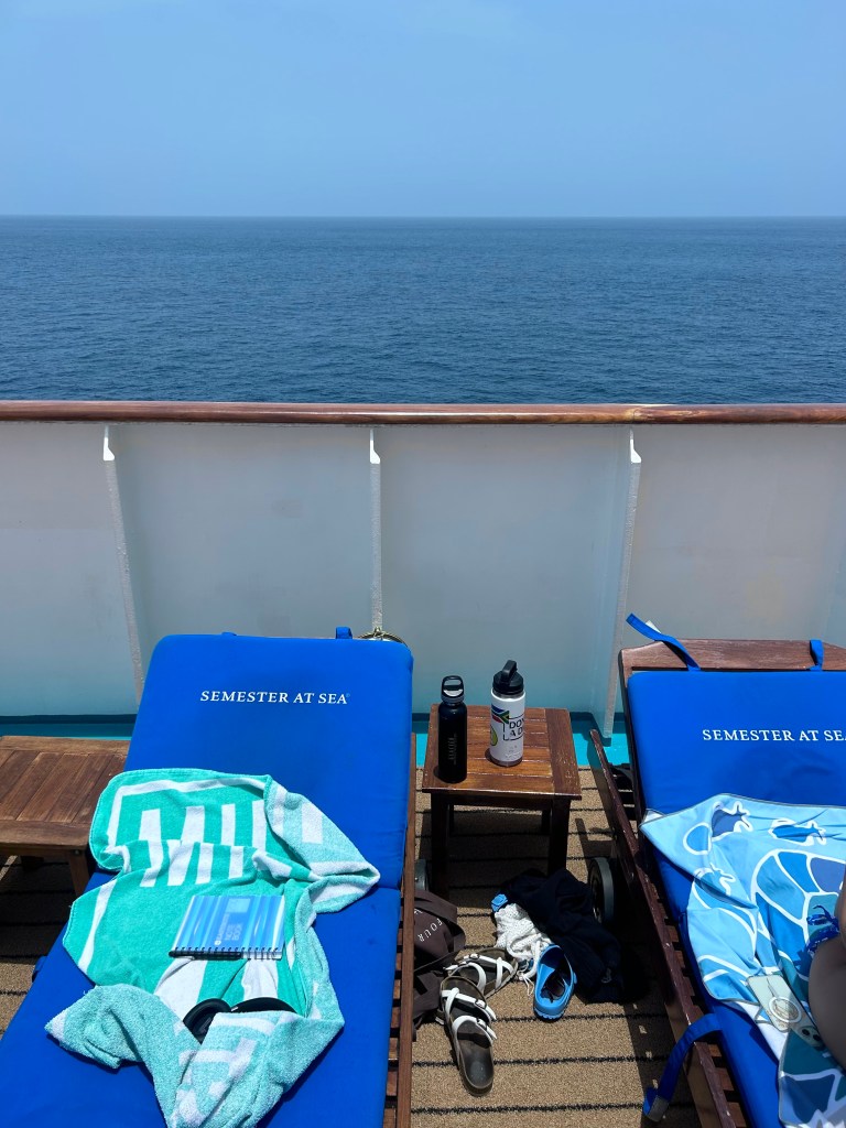 My first leg at sea was the realization of all my Semester at Sea dreams. I sat in the student union’s velvety chairs that I had seen in so many SASer alumni’s YouTube vlogs. My new friends and I chose “our table” in the dining hall. (I always thought I would be a Lido girly, but I ended up eating almost every meal in Berlin.) I spent afternoons reading by the pool, and it felt surreal. I couldn’t believe this was really my life.