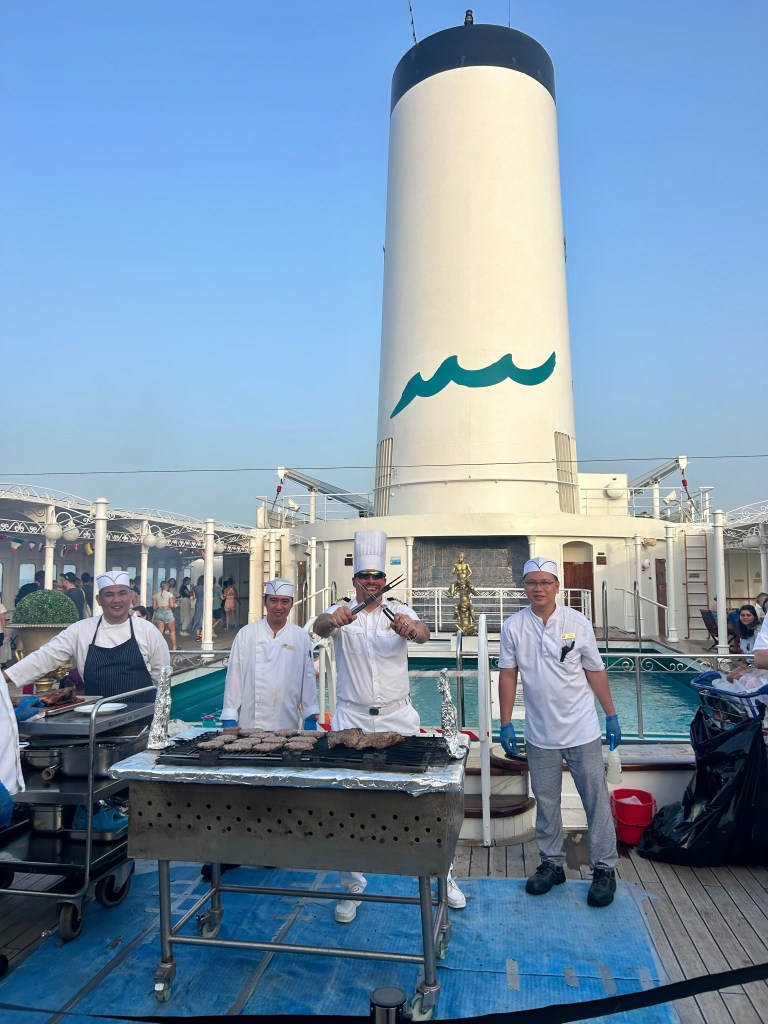 As we sail into port, everyone gathers outside to watch. Once we arrive, we have to wait for immigration to clear the ship. Then, we disembark by sea, rotating who goes first every time, and wait even longer to individually pass through immigration. The entire process can take hours. (I’ve never been on an actual cruise, but I can’t imagine going through all of that effort for just a day in port.)