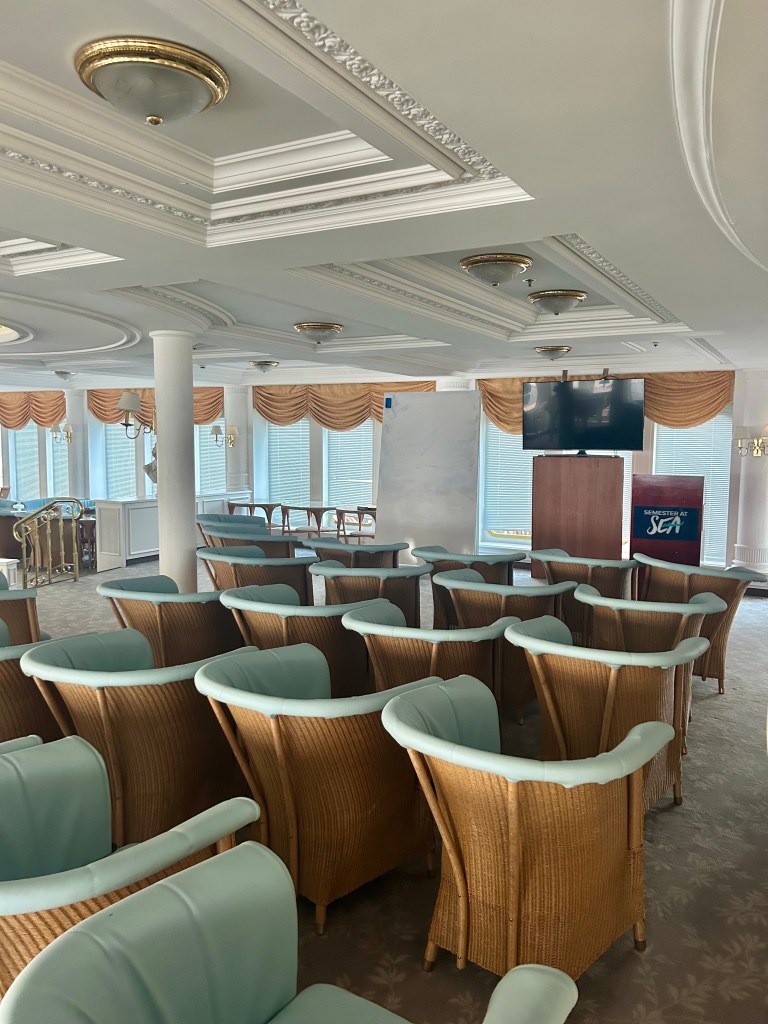 There are educational events hosted by teachers or “interport lecturers,” which are guests invited by Semester at Sea to sail with us on the way to their port country. Sometimes, these are interport students who attend our classes and eat with us in the dining hall. The interport lectures are optional, but I highly encourage attending at least a couple of them. Learning from a local is interesting and valuable.