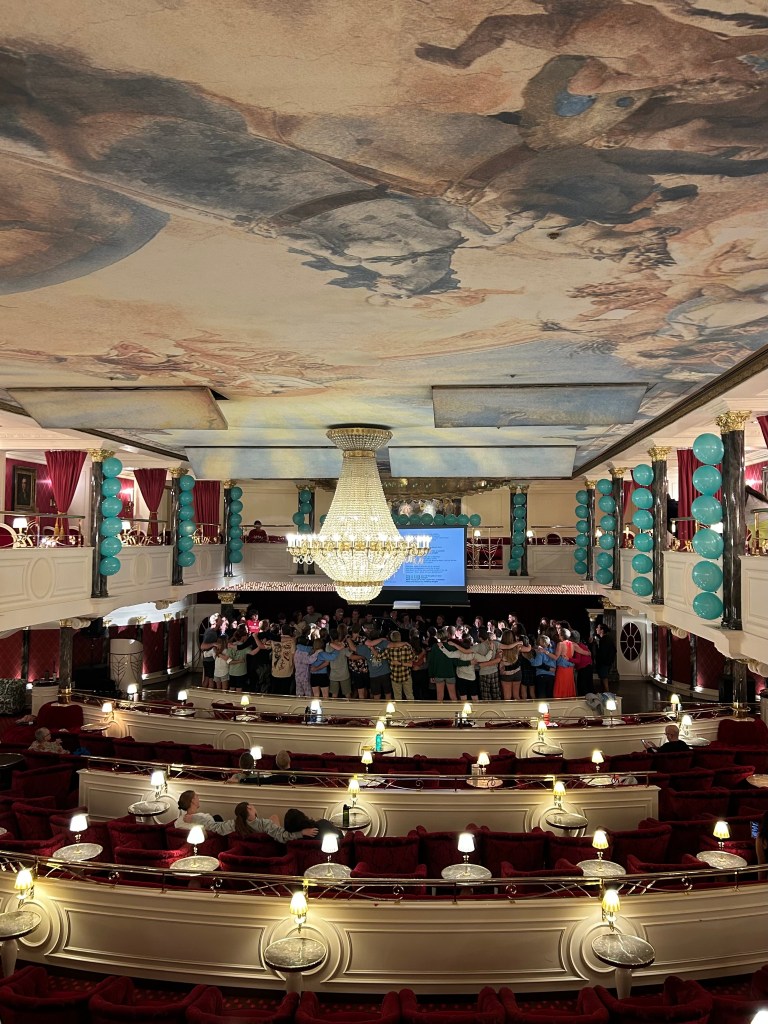 Students create clubs and organizations at the beginning of the voyage. For example, my voyage had line dancing, karaoke, and sunrise yoga.