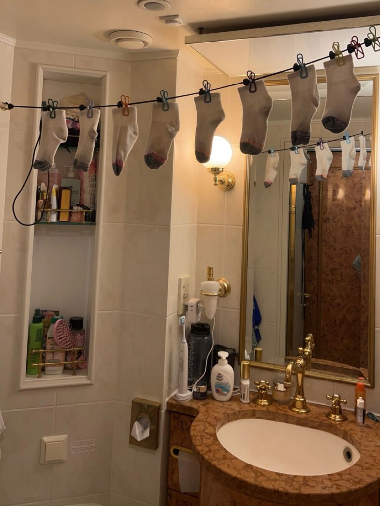Clothesline/laundry detergent: I forgot to bring laundry detergent for sink laundry, and then I never ended up needing it. The ship laundry service was $7 per bag of laundry, and, though the bag looks small, I only had to do it once per sea leg at most. I’ve heard from past voyages that the laundry service is abrasive on clothes, but none of my clothes were ever damaged or lost. If you really need to wash something by hand, just ask someone else to borrow their detergent. The ship already provides clothes lines, which aren’t great, but mine worked fine the once or twice I used it.