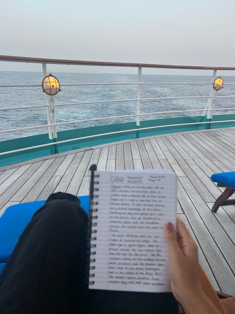 Toiletries: My voyage embarked from Bangkok, so I bought shampoo, conditioner, and other toiletries at the mall there. It’s not necessary to fly a bunch of liquids across the world. I also traveled alone to Bangkok, so I did not want to carry any more bulk/weight than necessary. *The one exception to this—feminine products. Check whether your port countries sell your preferred feminine products because this was an issue on my voyage!
