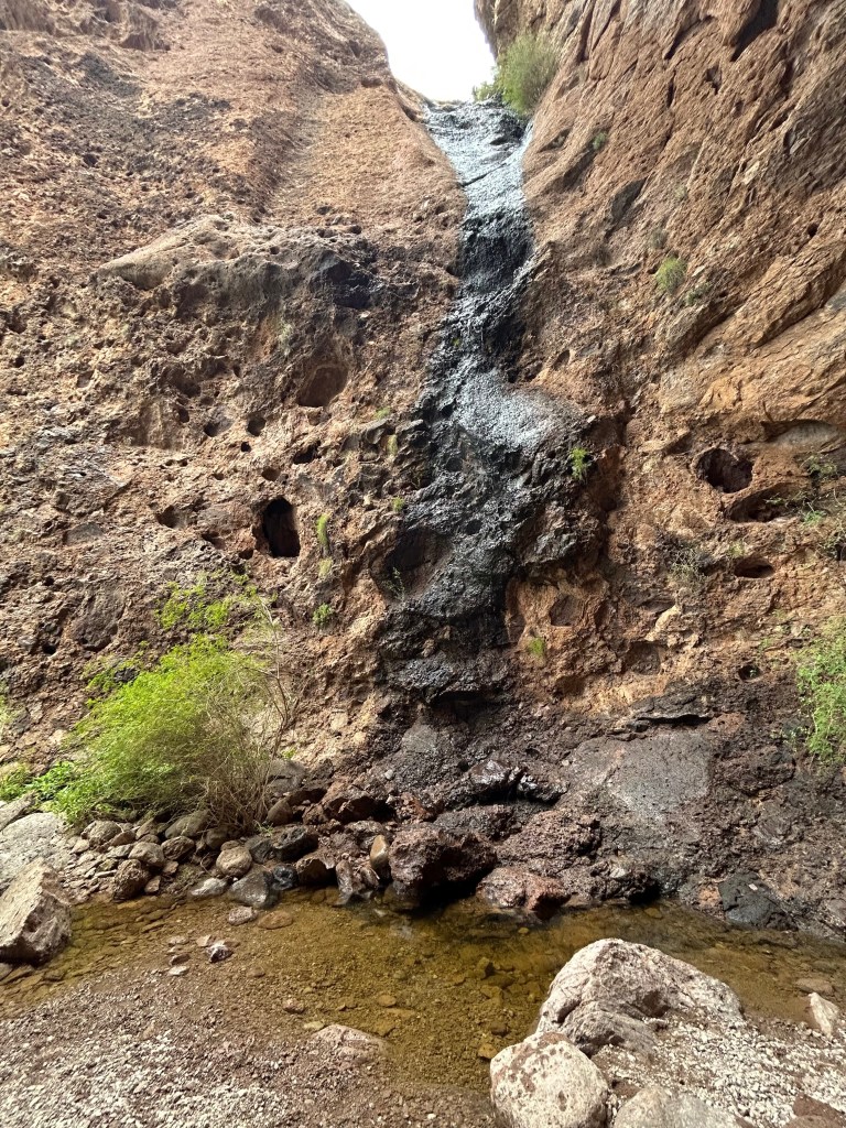 After an unusually rainy fall and some early winter snowmelt, there was plenty of water in Bear Canyon when I hiked it. I counted seven water crossings before reaching the main falls at the trail’s end. However, I did see reviews on AllTrails from seasons when the falls were completely dry, so beware!