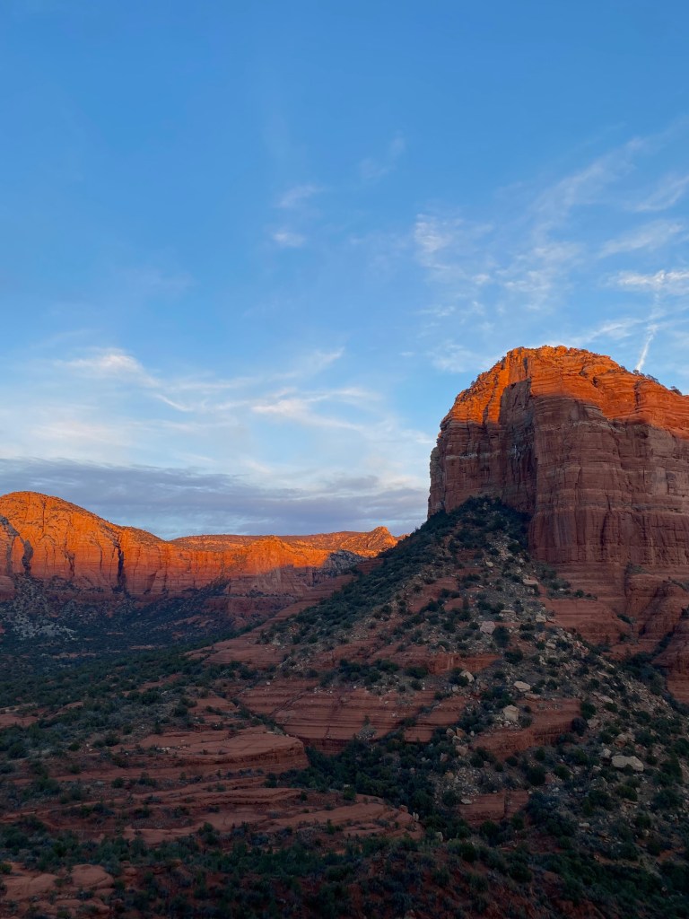 This is my favorite sunset spot in Sedona. There are cairnsβrock stacksβthat mark the best route up Bell Rock, but there’s not an official end point. Just scramble up the rock, and pick a spot to watch the sunset. Despite being highly popular, there’s plenty of space to spread out on the rock.