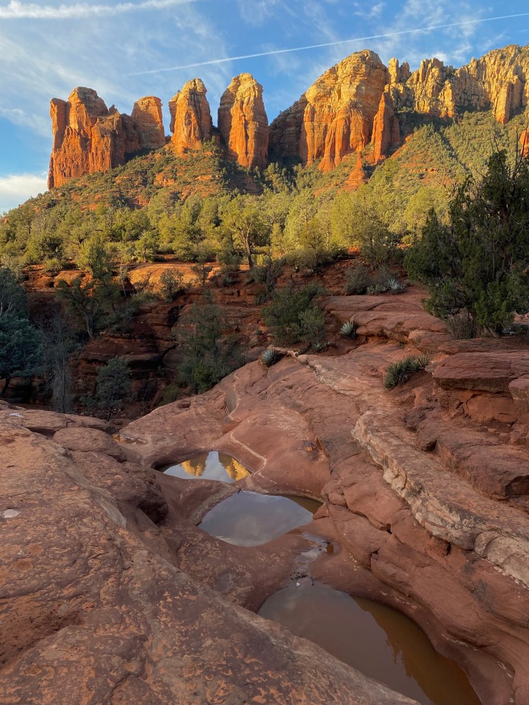 The pools are small, and some AllTrails reviews say “underwhelming.” However, that sunrise photo with the pools is my favorite Sedona photo. The pools are on Soldier Pass trail, which also features a large sinkhole.